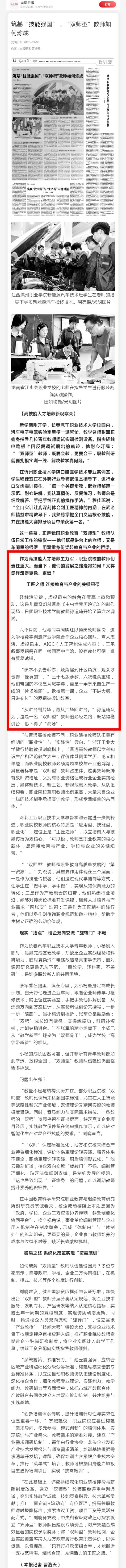 光明日报报道:筑基“技能强国”,“双师型”教师如何炼成
