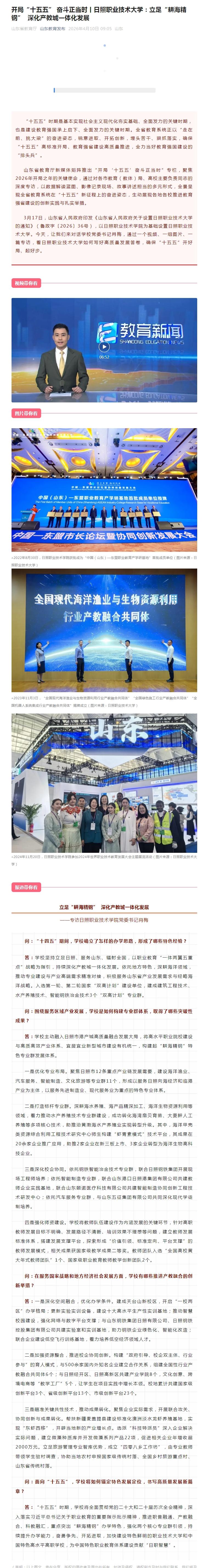 山东教育发布报道:开局“十五五” 奋斗正当时丨日照职业技术大学:立足“耕海精钢” 深化产教城一体化发展